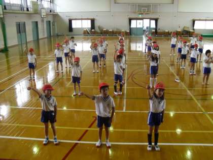 教室で歌とダンスの練習をしていましたが、体育館ではまた違う雰囲気に少し緊張した様子でした。