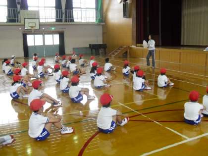 体育館で1年生を迎える会の練習をしました。