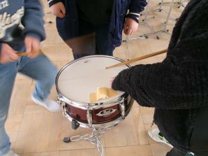 音を鳴らしたり、触ったりして、楽器の様子よく観察しています。