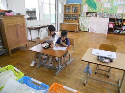 5月22日(火)〜25日(金)まで、向島東中学校の2年生の3名がチャレンジ体験でくすのき学級にも来てくれました。やさしい中学校のお姉さん先生とお兄さん先生にあそんでもらっておおよろこびのくすのきの子供たちでした。
