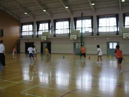今日は,本番を想定して,フロアーでのゲームに慣れるため,体育館の中で練習をしました。