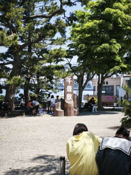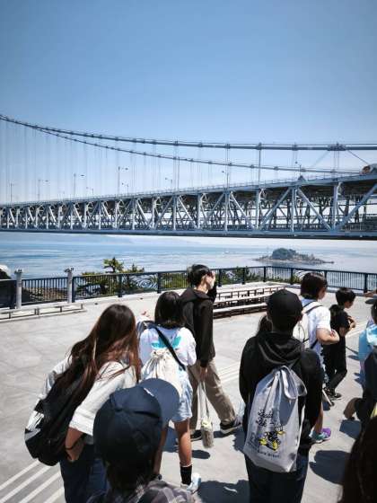 昼食の時間です。鳴門大橋・鳴門公園でおうちの方の愛情弁当を食べています。朝早くからご準備ありがとうございました。