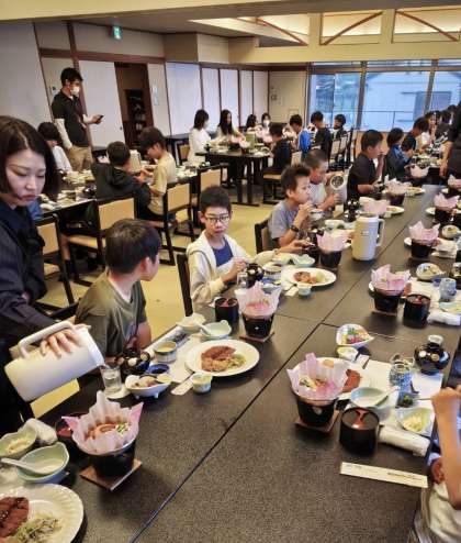 おはようございます。子どもたちは朝から元気です。まずは夕食の様子です。