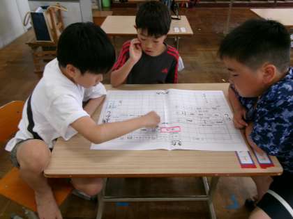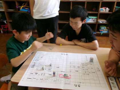 ゴールのくすのき学級教室になかなかたどり着かず、「もうすぐゴールやったのに」との声も聞かれます。楽しみながら繰り返すことで、方位の感覚はしっかりつくと感じられた学習でした。