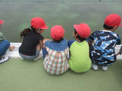 鬼ごっこをしているようなアメンボ、けんかをしているようなアメンボ、アメンボの様子がおもしろく、じっと観察している子どもたちもいました。