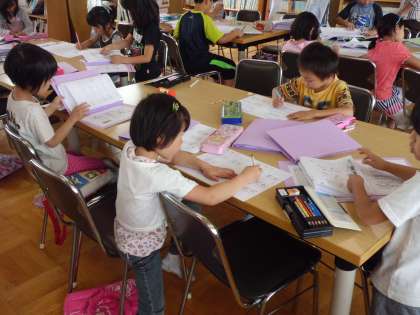 低学年の参加が多く,自分でプリントをさがし,自分で問題に向かい,まるつけも