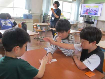 くすのき ソーシャルスキルトレーニング 公開日 2025/06/12 更新日 2025/06/12 学校の様子 学活の学習では、ソーシャルスキルトレーニングをしています。 仲良く過ごすために必要な力をかるたをしたり場面を想定したりして身につけられるように取り組んでいます。