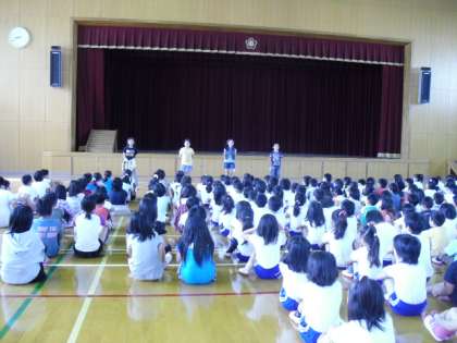 今日の朝会で,4年生が作った詩の発表をしました。茶摘みに行ったことをテーマに詩を作ったのですが,それぞれがリズムなどを工夫して自分の気持ちを詩に表現することができました。これからも,自分が感じたことなどを詩に表し,友達同士で交流していきたいと思います。