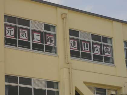 先日,決定した児童会の今年度のスローガンを児童会室(4F)窓に掲示しました。短い言葉ですが,子どもたちのたくさん思いが込められています。みんなで実行していきましょうね♪