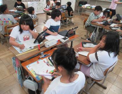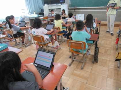 2学期から2〜6年生のタブレットが新しくなりました。従来のと違って、写真が撮りやすくなったり、起動するのが早くなったりしています。おうちでもiPadを利用されている子たちはサクサク使いこなせていました。しかしながら学校からの貸出ですから、きちんとルールを守って使ってほしいと思います。