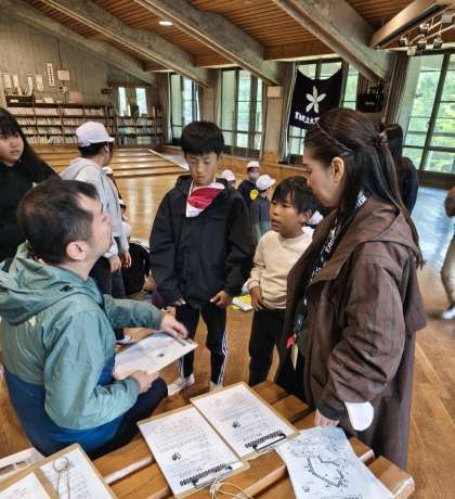 館内ラリーをしています。地図を見ながら問題を解いていきますが、問題がなかなか見つかりません。