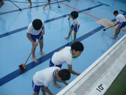 順延になっていたプール掃除を今日の5校時に行いました。1年間の汚れが…と思って危惧していたのですが,雨などで流されたのか案外ゴミなどは少なかったです。6年生は懸命に掃除をがんばり,たいへん気持ちのよいプールとなりました。更衣室もプールサイドも階段も,本当にピッカピカにきれいになりました。さすがです。