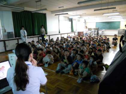 毎日雨の日が続きます。学校の近くの宇治川もとても増水していて、水の事故が起こっているようです。そんな中でも、子どもたちは元気に登校してきてくれています。今週はブクブクうがい週間で「むしば菌」をやっつける週になっています。1年生から4年生までは,19日と今日、1時間ずつ歯科衛生士の先生による指導をうけました。初めて指導を受ける1年生は2年生の上手な歯磨きの方法を真似て、とても上手にみがくことができ、『ツルツルキュッキュ』な歯を体験していました。歯磨き名人の2年生はとてもかっこ良いお兄さんお姉さんでした♪給食後のブクブクうがいも続けてほしいと思います。保健委員会で育てているトマトの苗「りりこ」も、この長雨にマケズ、尻腐れ症にもマケズ『ツルツルピカピカ』の実をつけてくれています。