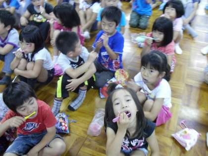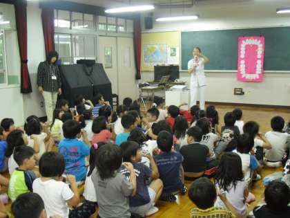 今日は1年生と一緒に歯科衛生士の先生から歯磨き指導をしていただきました。