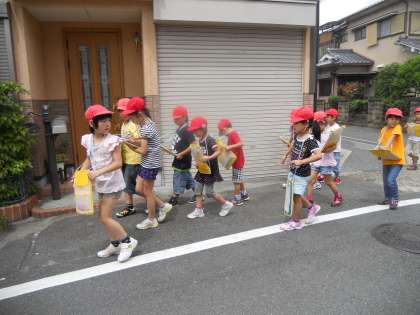 2年生の生活の学習で町たんけんに行きました。事前にどんなところに行きたいかを話し合ったり、どの道を通るかを地図で確認したりしてから行きました。