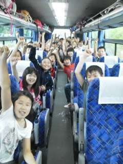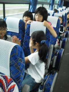 雨の中ですがみんな元気いっぱいです。バスの中楽しく過ごしています。マナーもよくほめられました。