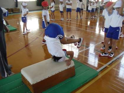 跳び箱に挑戦すると、できる子が増えてきて、「すごい!」と僕も私もやってみる!