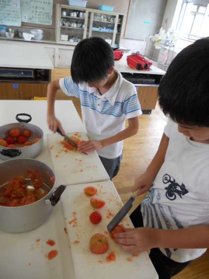 9月とはいえ、まだまだ暑い日が続きますが、少しずつ秋の気配を感じます。夏休み前から委員会で育てていたトマト「りりこ」も収穫を終え、いよいよ明日は調理していただく日「トマト収穫祭」です。前日から休み時間、放課後と積極的に活動してくれました。5月からの大事に育ててきたトマトをしっかり味わって、学んでほしいと思います。