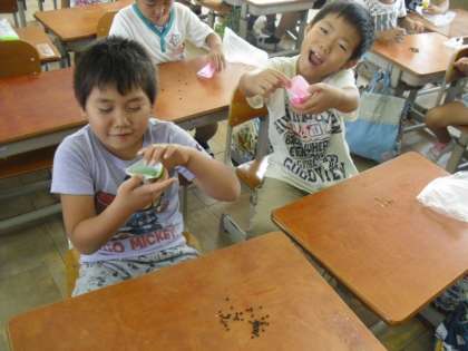 先日の生活科の時間に、たくさん採れたあさがおのたねをどうするのかを考えました。