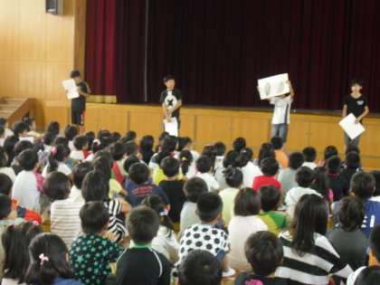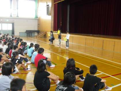 今朝は,児童朝会がありました。計画委員の6年生が司会をし,進めていきました。