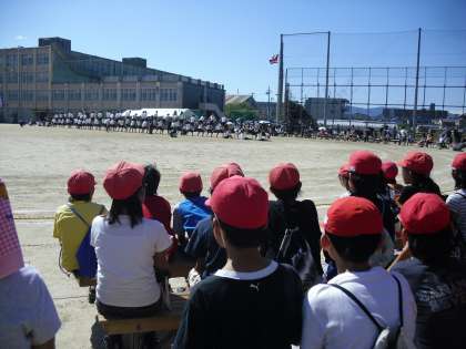 今日は,向島東中学校の体育祭「向東祭」を見学に行きました。「中学校の運動会ってこんなんなんだぁ。」と言いながら,競技を観戦しました。大きなお兄ちゃんお姉ちゃんの中には,近所の人やフレサグループでお世話になった顔見知りの人もいました。