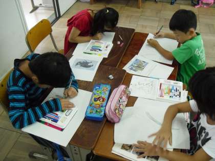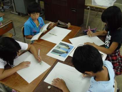 2組はペンギンが出てくる話だったので、毎日音読を頑張っている「どうぶつ園のじゅうい」に出てくるペンギンを見ながら描いている子もいました。