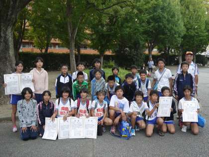 8日(月)の体育の日に西京極競技場で陸上記録会が実施されました。体育の日にふさわしいさわやかな天気の下,6年生の参加児童みんなが精一杯力を発揮しました。その結果,800mで8位,100mで2位と3位,100×4リレーではなんと1位というすばらしい結果を残すことができました。この結果は個人の努力はもちろんですが,日々6年生がチームとしてがんばった結果であると思います。これからもさまざまな部活動で大会がありますが,力を合わしてがんばってもらいたいです。