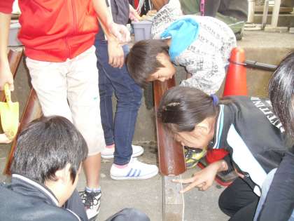 校内のいろんな土を集めて,流水堆積実験をしました。