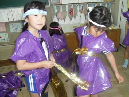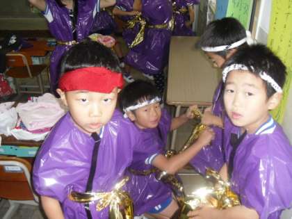 今日、初めて衣装を着て、興奮気味の子ども達。