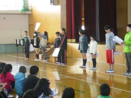 今日は,児童朝会がありました。図書委員会からは,「秋のどんぐり読書週間について」,放送委員からは,「放送アンケート結果」についての話がありました。