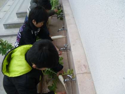 寒い中でしたが、一生懸命大根を抜いて、土を水で洗いました。
