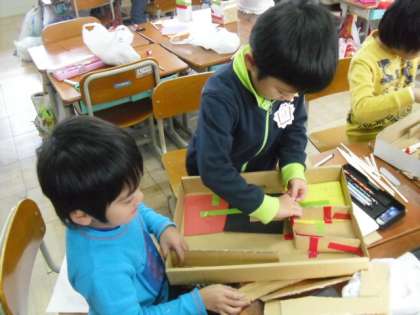 子どもたちはどんぐりをつかった遊びをたくさん考えてつくっています。
