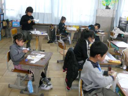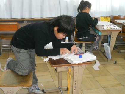 くすのき学級の2年生は図工で「紙はんが」を作っています。
