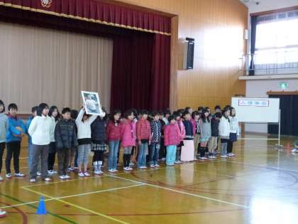 全校合唱では,「ビリーブ」のやさしい歌声が体育館に響いていました。