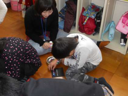 1月10日(木)に向島二の丸小学校で、向島の五つの小学校の育成学級の子どもたちが集まって、「小さな巨匠展」にむけての合同作品作りをしました。キラキラの木につける葉っぱを、手形でペタペタ作ったり、作品の題名をきらきらのシールをはって文字にして作ったりしました。みんなで協力して、楽しい作品ができそうです。