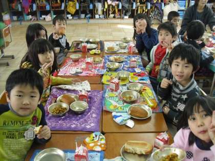 子どもたちはいつも以上に「ありがとう」の気持ちをこめて給食を食べていました。