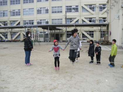 中間休みにフレサのグループで大なわとびをして楽しみました!