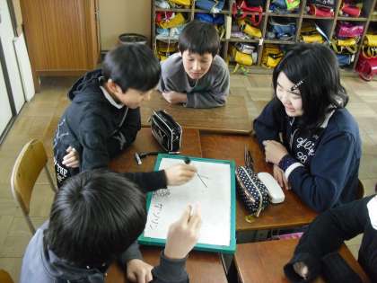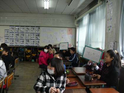 外国語活動で,英語活動をしました。先週『Who am I?』クイズをみんなでつくりました。お隣のクラスメイトが作成したものを解きました。グループごとに解き,得点を競い合いました。楽しかったです。