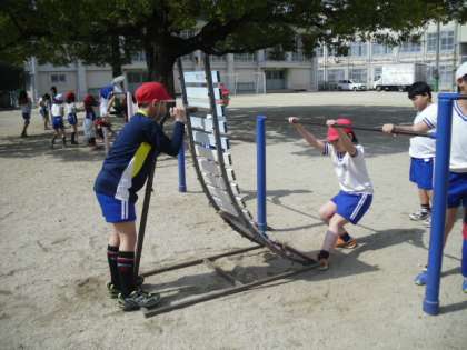 鉄棒では、逆上がりの練習をがんばる子、教えてあげる子がいて、微笑ましかったです。