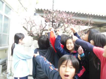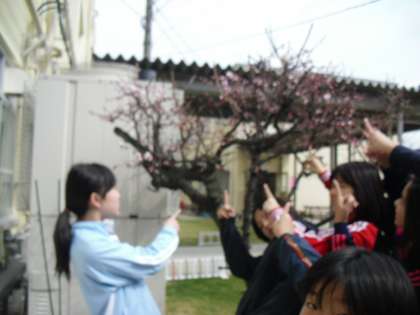 春を告げているなぁと話していたのに,今日はきれいに咲いています。この陽気に一気に咲きそうな勢いです。まるで,6年生の卒業を祝っているようです。