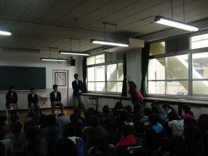 今日は,6校時に向島東中学校の先輩方から,中学校生活や高校受験についての話を聞くことができました。みんなしっかりと先輩方の話を聞き,質問をしたり感想を伝えたりすることができました。