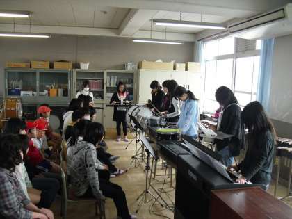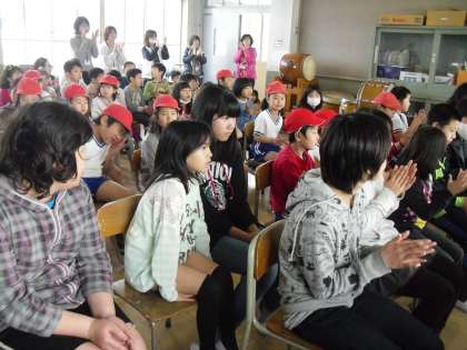今日は,中間休みに鼓笛部の6年生のお別れコンサートがありました。秋から6年生が時間を見つけては練習してきた『夏祭り』と『宇宙戦艦ヤマト』の曲を披露してくれました。低学年からもたくさん見に来てくれ,音楽室はいっぱいでした。最後の挨拶も6年生らしくとても素敵でした。