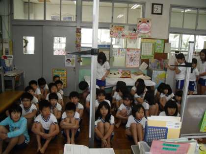 本日は今年度初めての身体計測でした。勉強だけでなく、睡眠・食事・運動など規則正しい生活を心がけ,心身ともに成長していってもらいたいです。礼儀正しい5年生は.大きな声でしっかりと養護の先生に挨拶・お礼を言うことができていました。