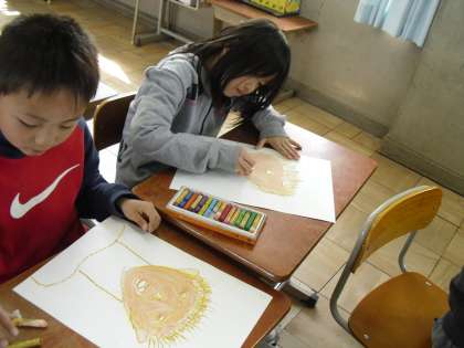 今日は図工の時間に「じぶんのかお」を描いてみました!