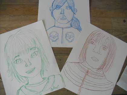 先週描いた自画像にもとに,鏡をよーく見て,線を付け足していきました。先週よりもいい仕上がり!