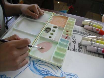 金曜日には,髪の毛の色を自分で混色し塗っていきます。