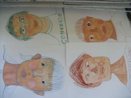 今日は,自分の肌の色を作りました。コンテで描いた線を消さないように,丁寧に丁寧に着色をしました。少しずつ肌の色を変化させながら塗っていきました。みんなとっても上手です。