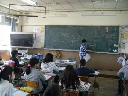 5年生の算数では体積の学習が佳境を迎えています。今日は複合図形の体積の求め方を考えて,説明する学習をしました。5年生の学習になって,言葉で説明する学習が多くなってきます。しかしまだ5年になって間もないですが,わかりやすい説明をすることができていました。