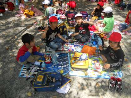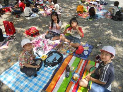 1・2年生の遠足は、石清水八幡宮に行きました。山に登って、帰りはケーブルカーに乗りました。暑かったけど、お弁当がおいしくて、とても嬉しそうでした。