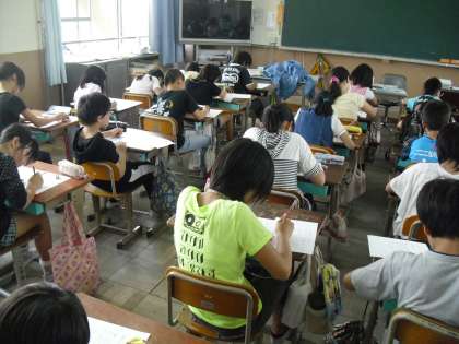 掃除時間後のステップタイムに,国語に関する課題に取り組んでいます。昨日は聴写をし,本日は視写に取り組みました。視写により作文力を高め,優れた文章表現力を付けるとともに,原稿用紙の使い方のスキルなども高めていってもらいたいです。